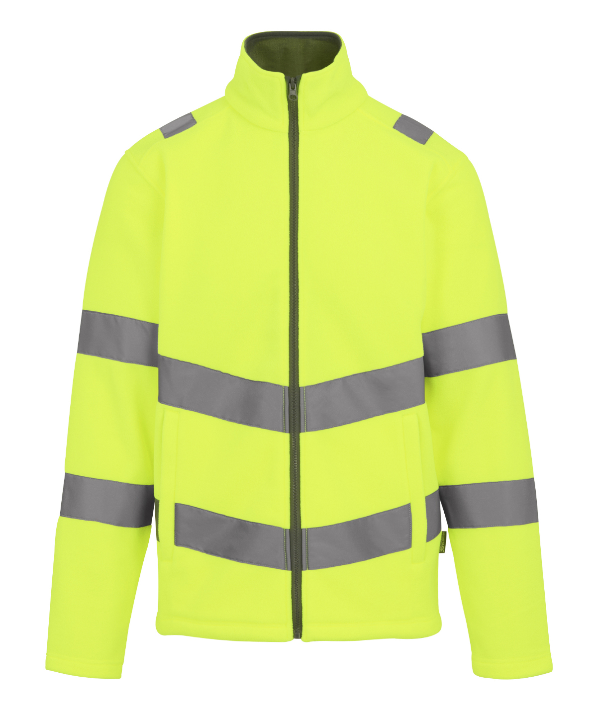 280 series anti-pill Symmetry fleece. Certified to EN ISO 20471:2013 A1:2016 Class 3. Orange colourway also conforms to RIS-3279-TOM. Two zipped lower pockets. Made with recycled content. ID Reflection – angled chevrons inform whether you are facing forwards or away.