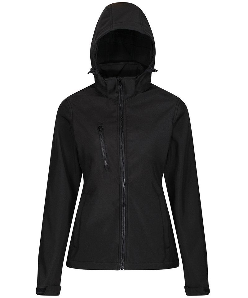 Warm-backed woven softshell XPT waterproof and breathable 3 layer membrane fabric. Fully printable outer fabric, with wind resistant inner membrane. Detachable softshell fabric hood, adjustable shock cord at face and cuff adjusters. 2 zipped lower pockets and 1 zipped chest pocket. .