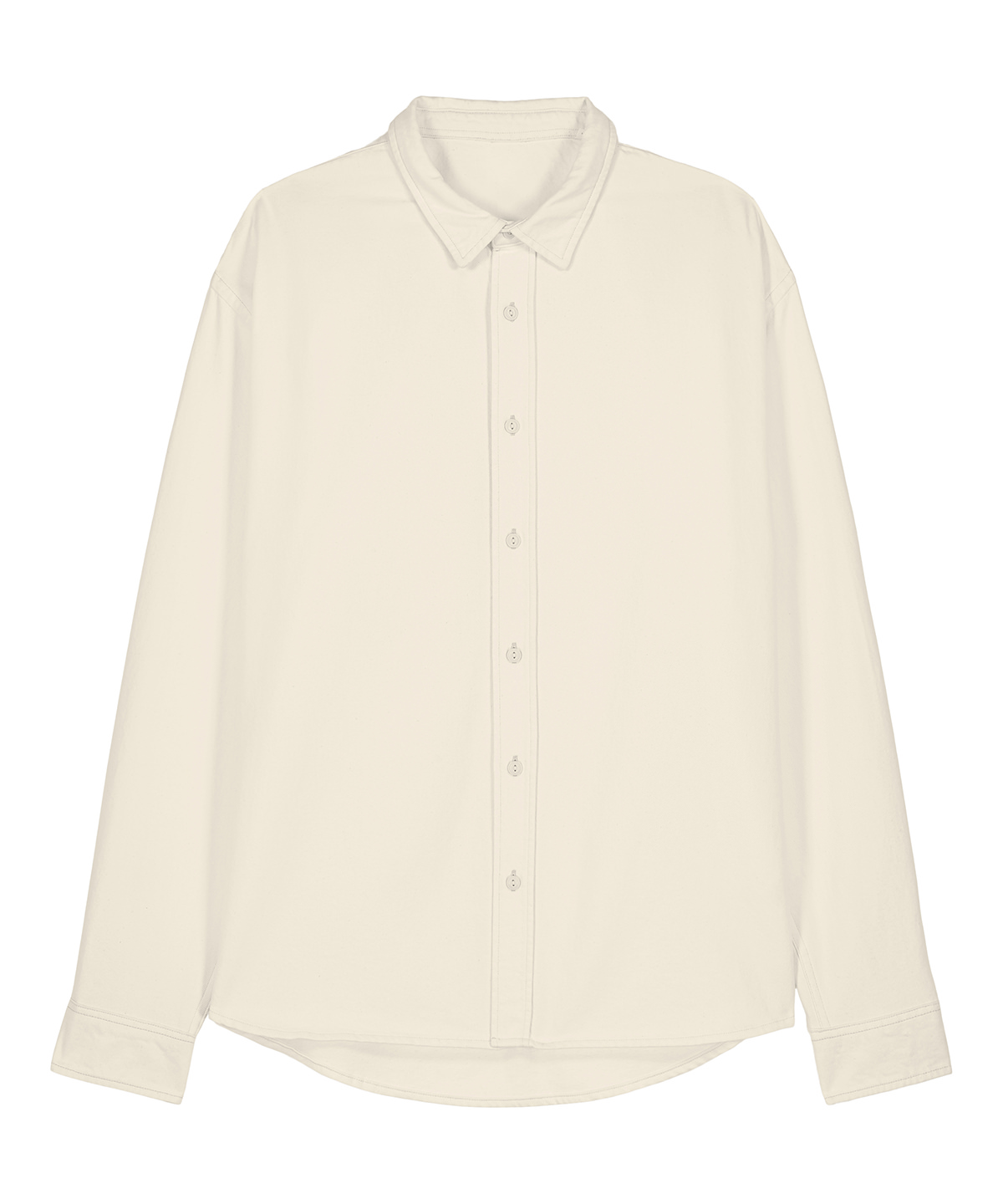 The Worker shirt. Relaxed unisex fit. Point collar with single-needle topstitches. Collar stand. Front placket with single-needle topstitches on each side. Forwarded shoulder. Back yoke. Inside yoke in self-fabric. Set-in sleeves. Sleeve placket with one button. Cuff with two buttons. Rounded cuff corners. Double pleats at cuff seam. Garment-Dyed Black Rock colour has a faded look on all seams due to garment washing. Garment-dyed product, so each garment may vary in appearance and colour may bleed – follow our care label. Read print recommendations carefully.