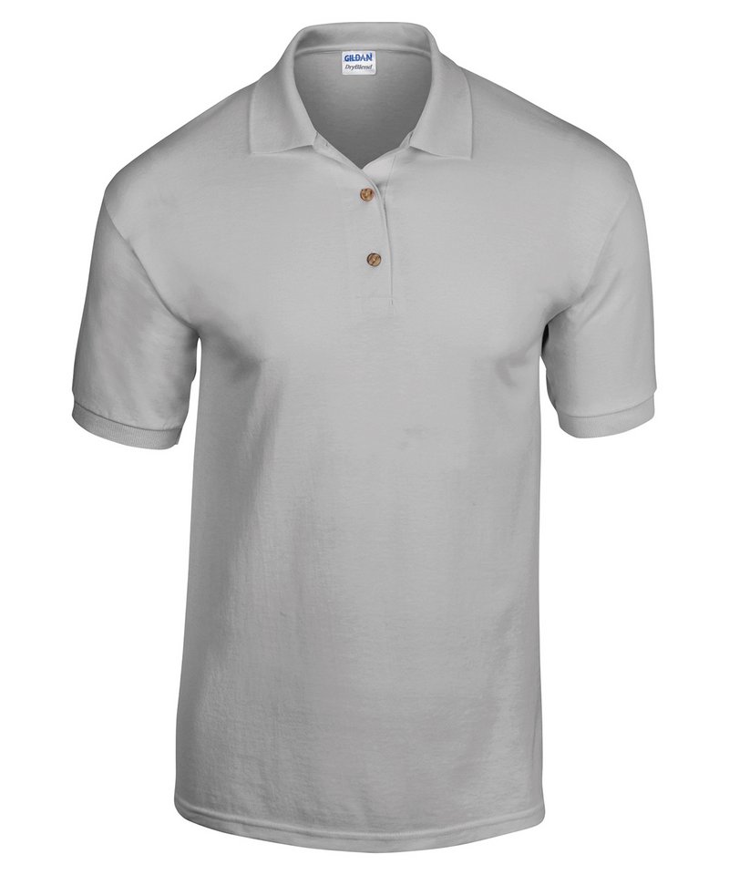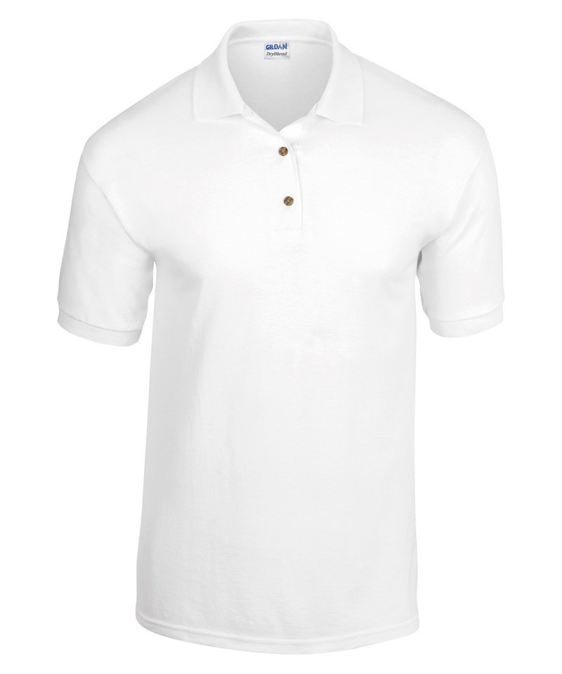 DryBlend® technology delivers moisture-wicking properties. Contoured welt collar and cuffs. Tearaway label. Clean finished placket with reinforced bottom box. 3 woodtone buttons. Twin-needle bottom hem.