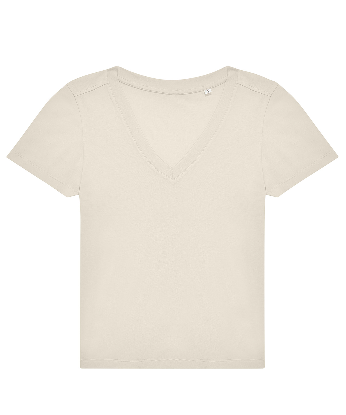 Classic modern fit #allpurpose. Side-seamed #fit. Feminine neck with enhanced V #femininesilhouette. Back neck tape for a clean finish #comfort. Forward shoulder seams #modern.