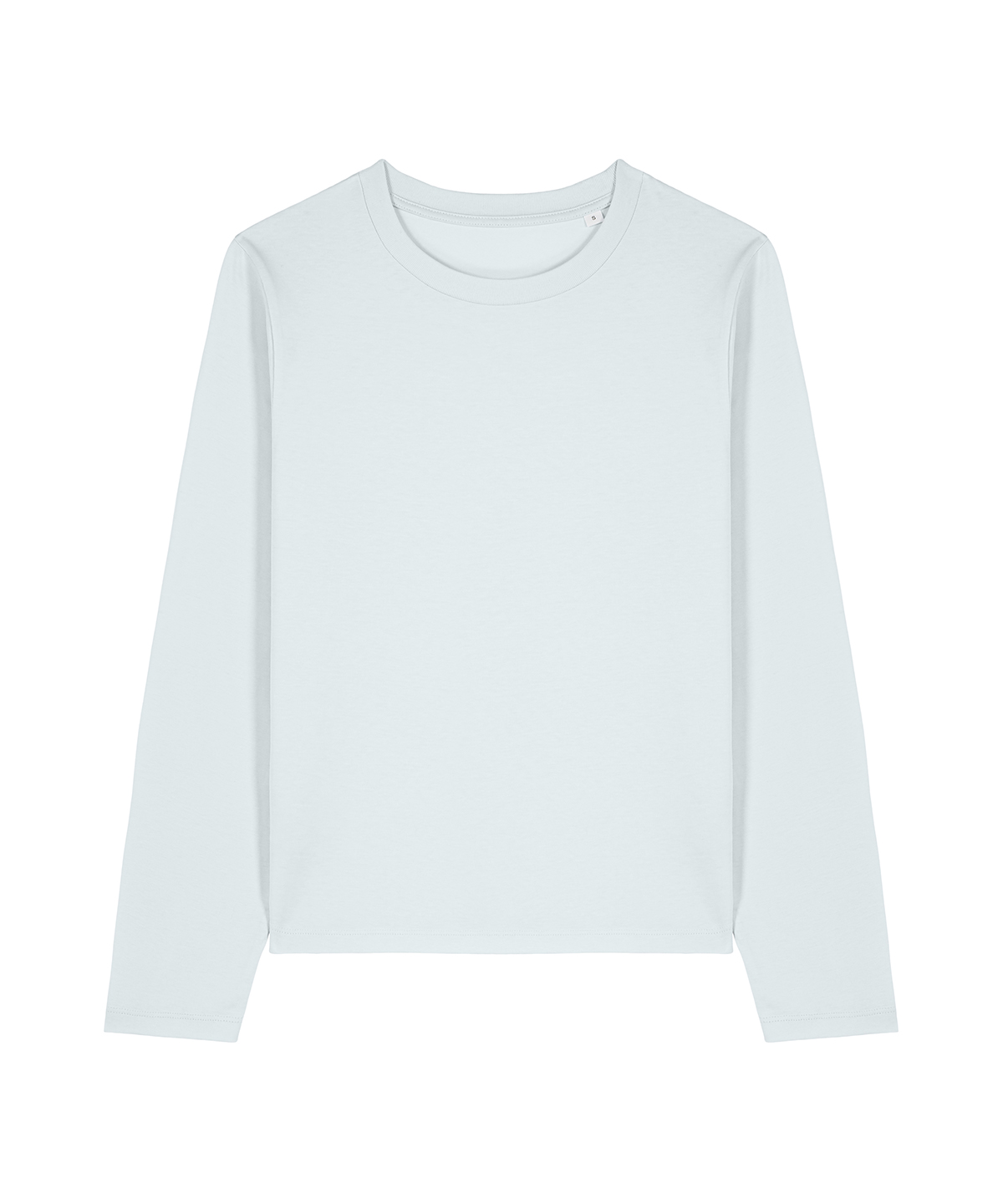 Set-in sleeve. 1×1 rib at neck collar. Narrow double-needle topstitches at sleeve cuff and hem. Inside back neck tape in self-fabric.