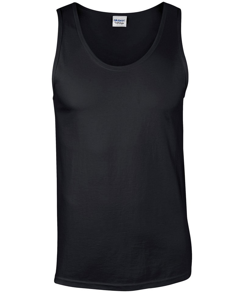 Wide straps. Rib knit trim applied to neckline and armholes. Twin needle bottom hem. Quarter-turned to eliminate centre crease. Tearaway label.