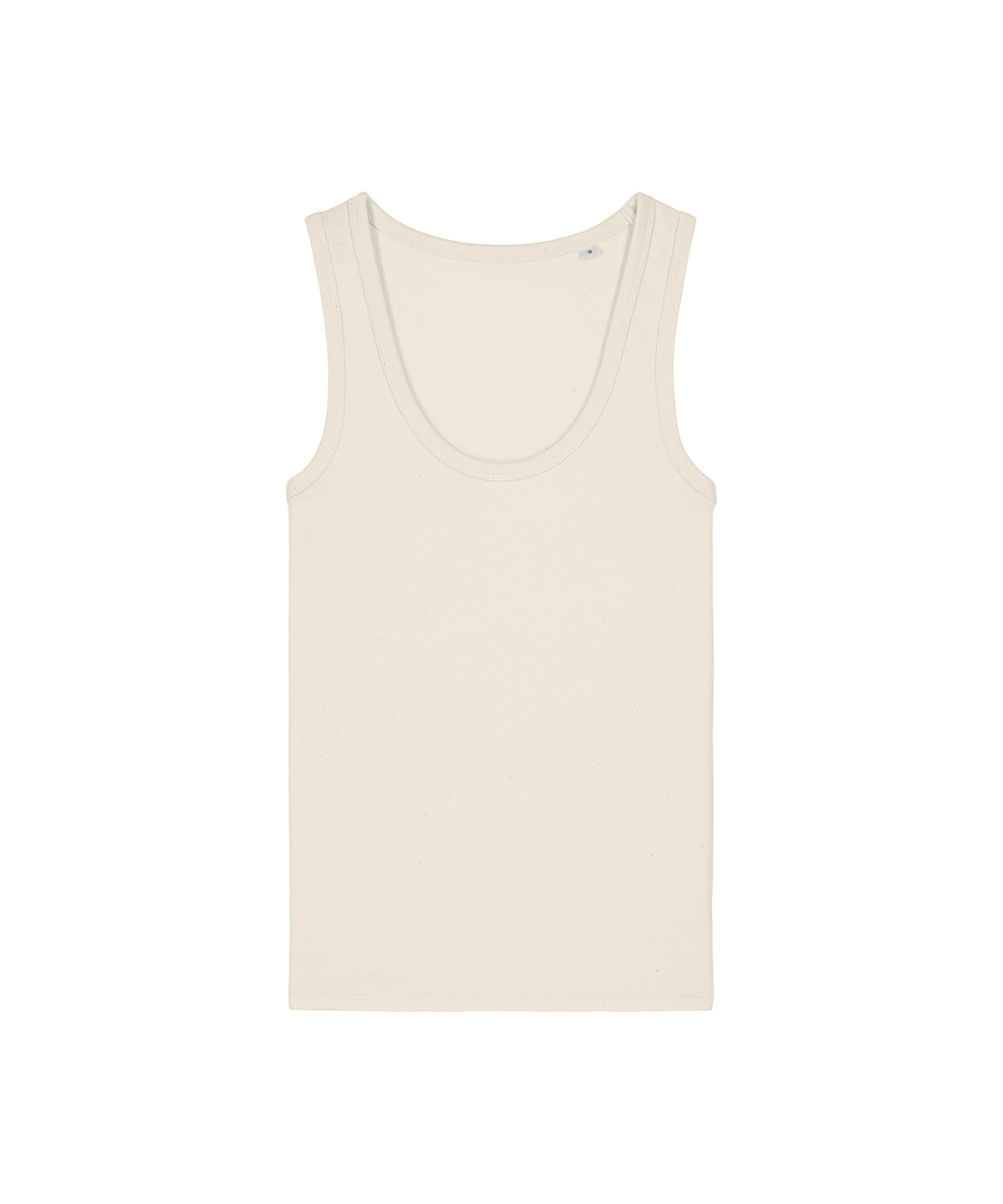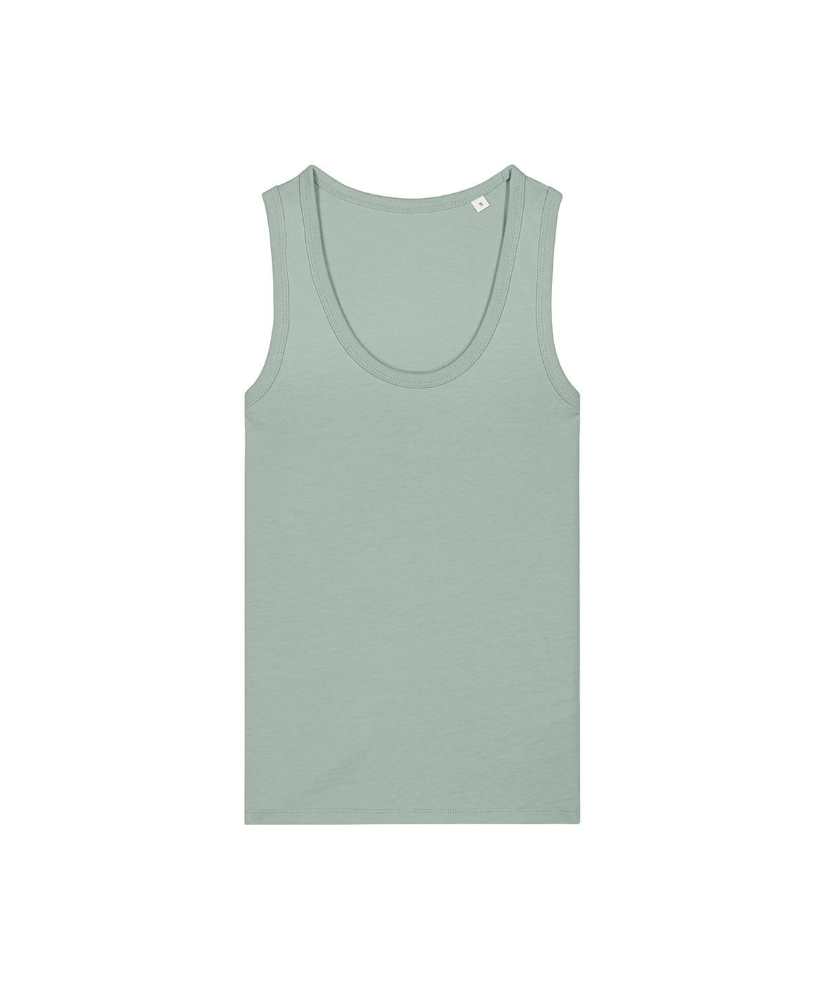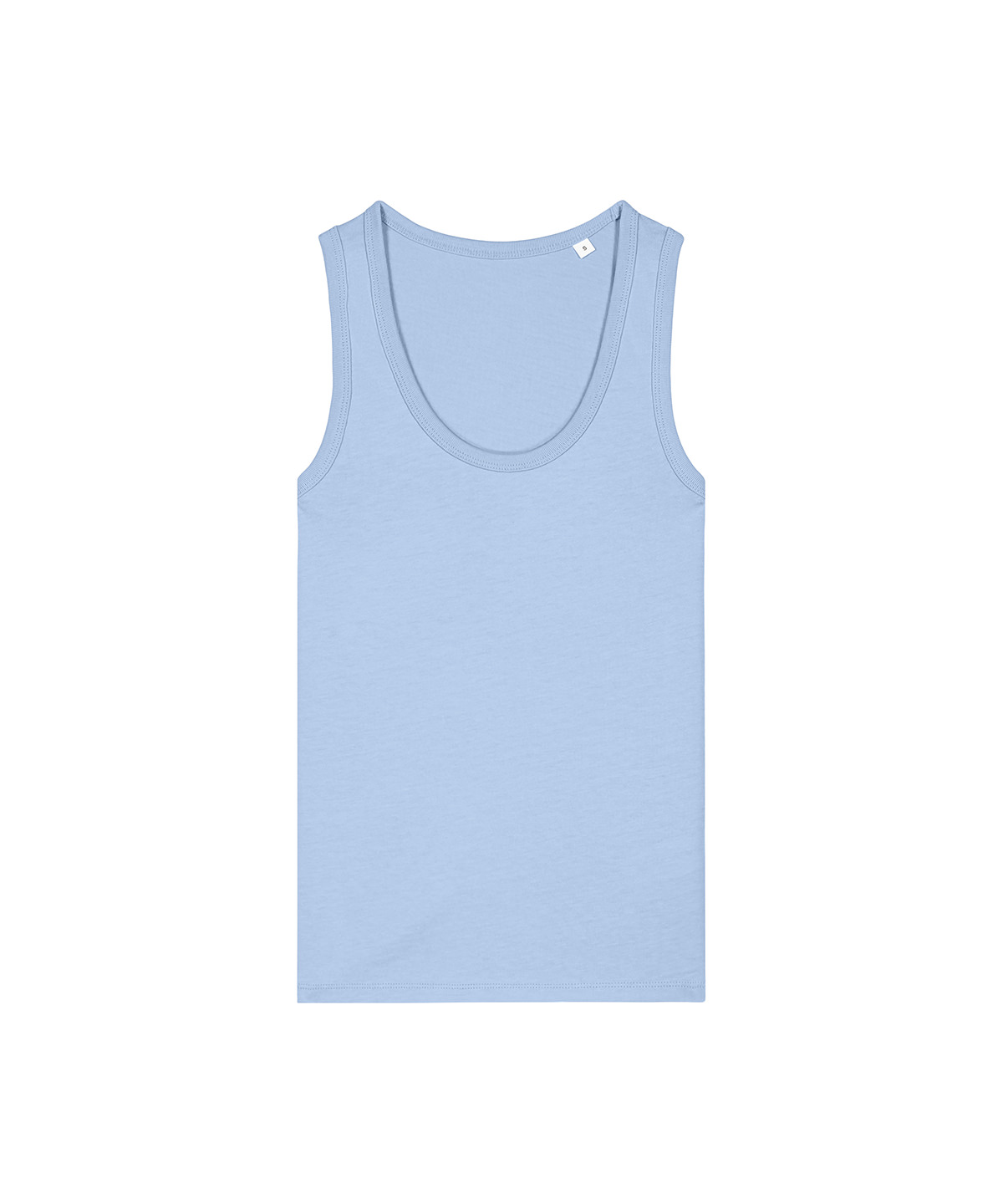 The Stella Ava fitted tank top for women. Sleeveless. 1×1 rib binding at collar and armhole. Overlock at back neck. Twin-needle topstitches at hem.