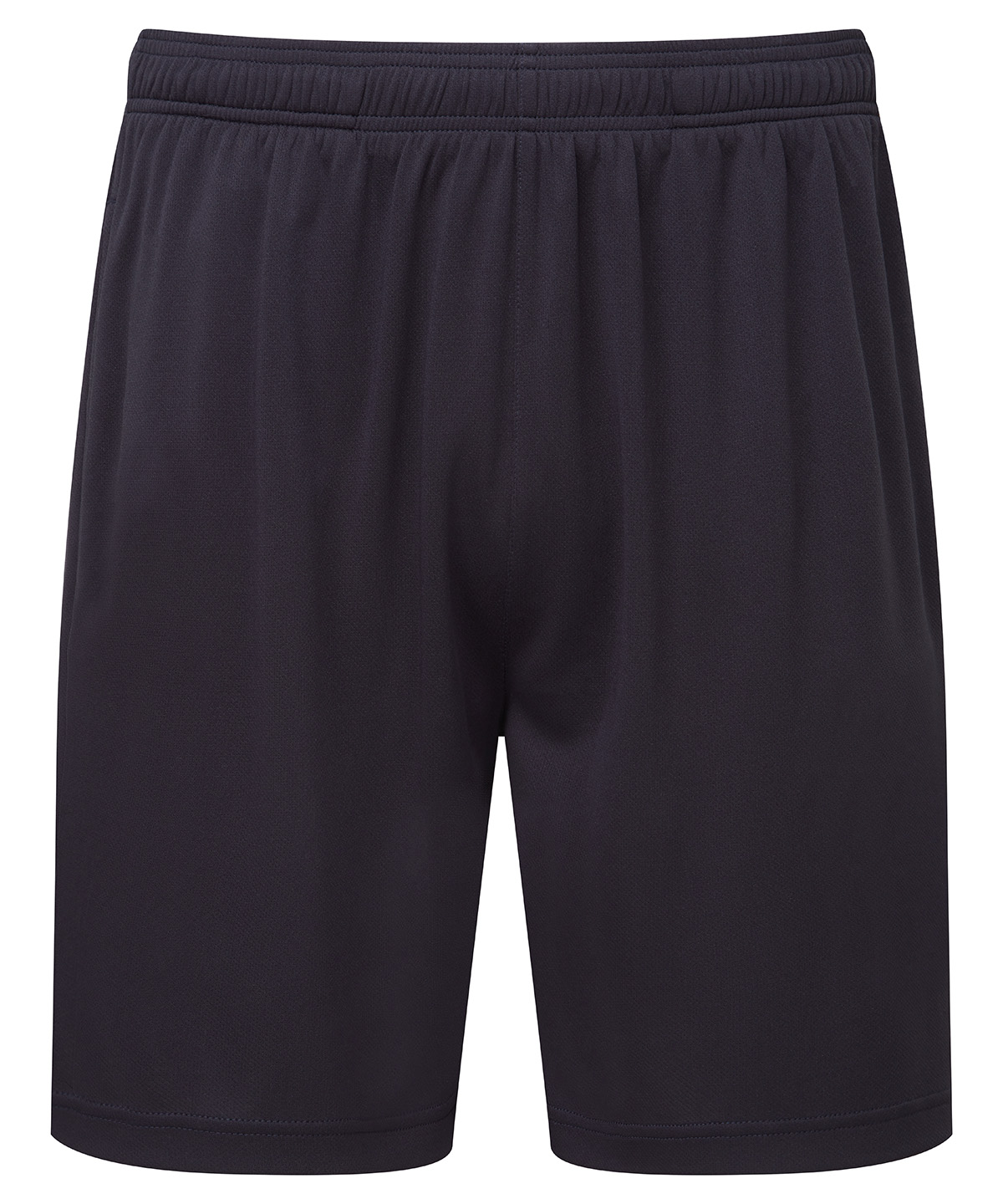 Performance shorts. Unisex fit. Cationic-dyed. Certified recycled polyester. Wicking fabric. Stretch. Lightweight. Breathable. Side pockets. Adjustable drawstring. Textured finish. Coin pocket. Inner brief.