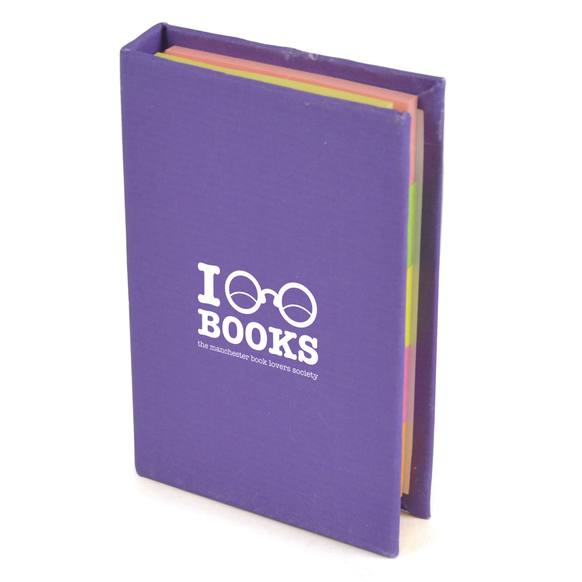 Small Hard Back Book with sticky notes and five coloured flags. Available in various colours.