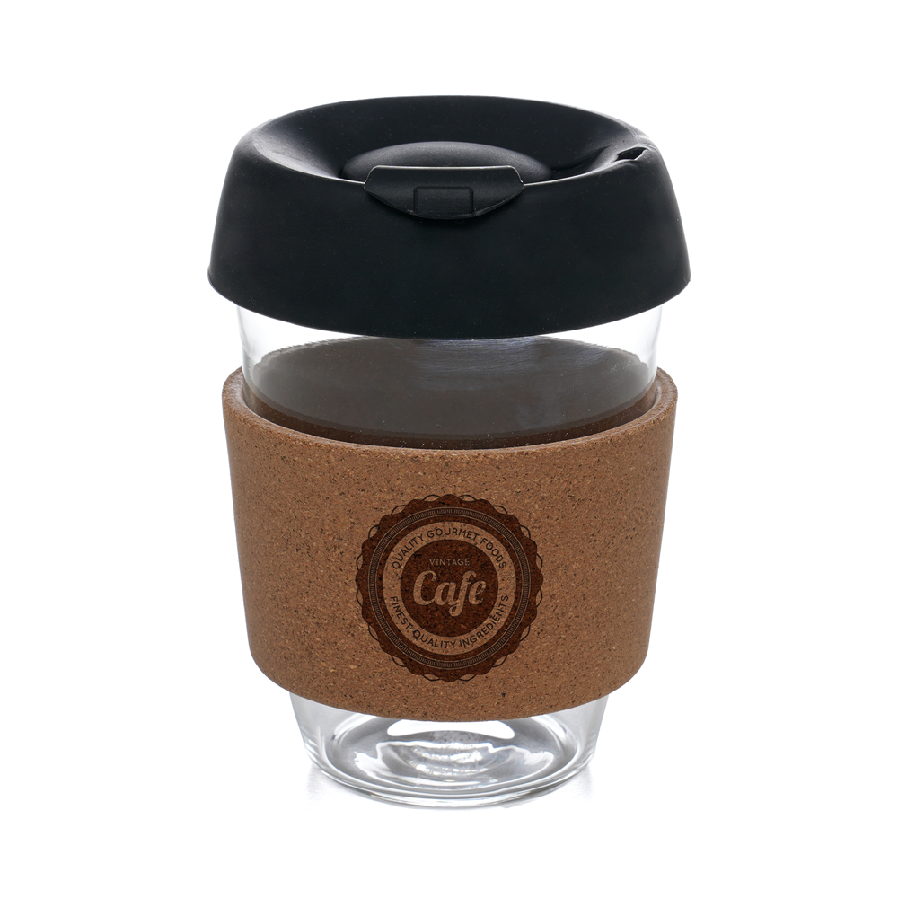The Rivo 350ml Glass Cup is a sleek and practical promotional item that combines a modern look with everyday usability. Made from durable borosilicate glass, it’s fitted with a black silicone lid for a secure sip and a cork hand holder for a comfortable grip. Designed for hot or cold drinks, the Rivo is a reusable alternative to disposable cups and offers a generous branding area to showcase your company logo or design. Its refined mix of glass, cork, and silicone makes it an appealing choice for the hospitality sector, offices, events, and corporate gifting. This is a cup that will be kept, reused, and noticed — a promotional giveaway that carries your brand with style.