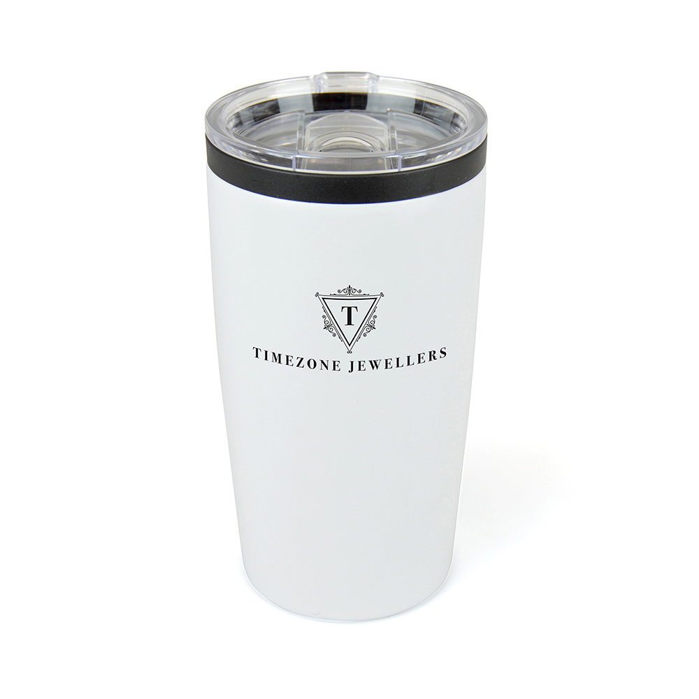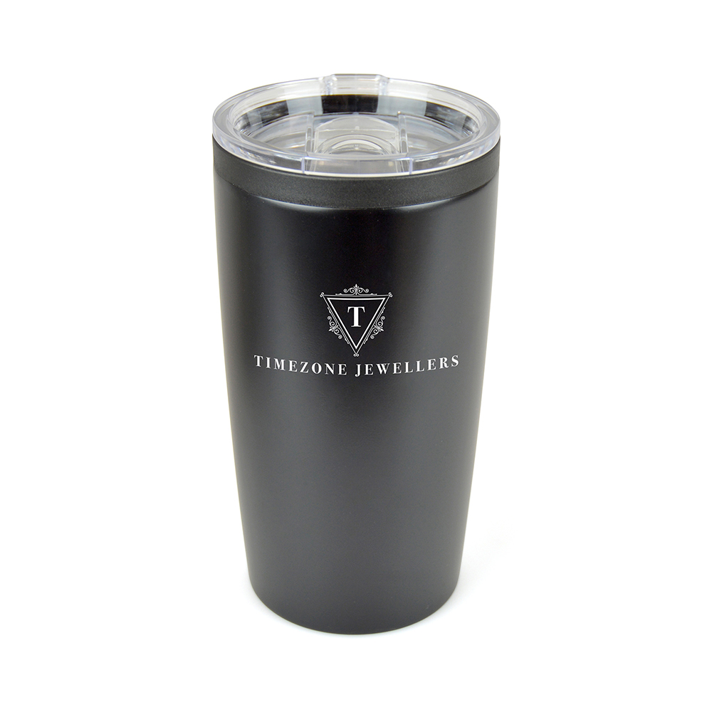 550ml double walled, stainless steel tumbler with black PP plastic inner. Clear plastic push on lid with sliding sipper for easy drinking on the go. BPA & PVC free.