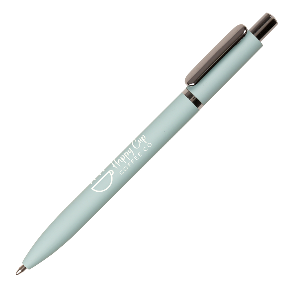 A stylish ball pen featuring a soft feel pastel finish barrel made from recycled aluminium with an iron band, clip, and pusher. This writing instrument features a pre-printed recycled symbol to highlight your company’s commitment to using recycled materials and offers exceptional writing performance. With its stylish design and commitment to repurposing waste material, this pen is sure to make a statement. This is the perfect eye-catching giveaway for trade shows, exhibitions and events. Order yours today!